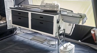 - Specielle detaljer: Mulighed for et lukket telt til montering i højre side ved køkkenet. God ventilation.